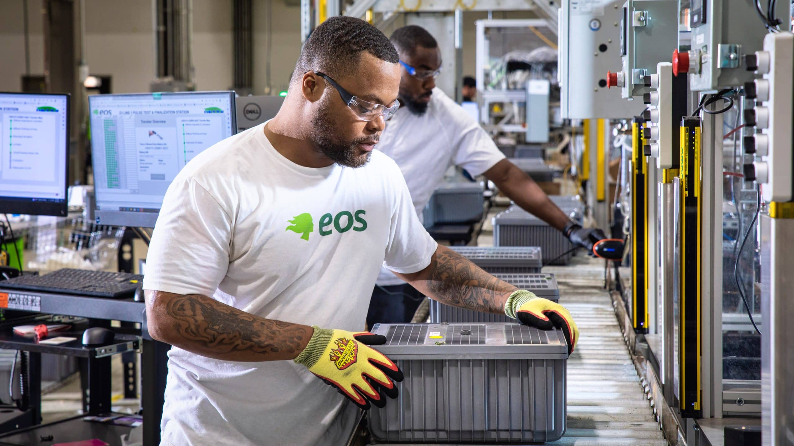 На данный момент Eos управляет полуавтоматизированным заводом в Пенсильвании, способным выпускать около 540 мегаватт-часов продукции в год (что эквивалентно энергопотреблению примерно 7 000 средних американских электромобилей, если бы это были литий-ионные аккумуляторы), хотя предприятие пока работает не на полную мощность.
